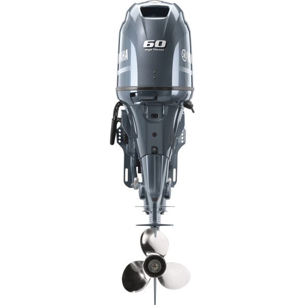 The T60 come standard with Yamaha’s patented dual thrust propeller that allows exhaust to escape in the opposite direction when in reverse. This gives the propeller access to undisturbed water in both directions for better traction and effortless maneuverability.